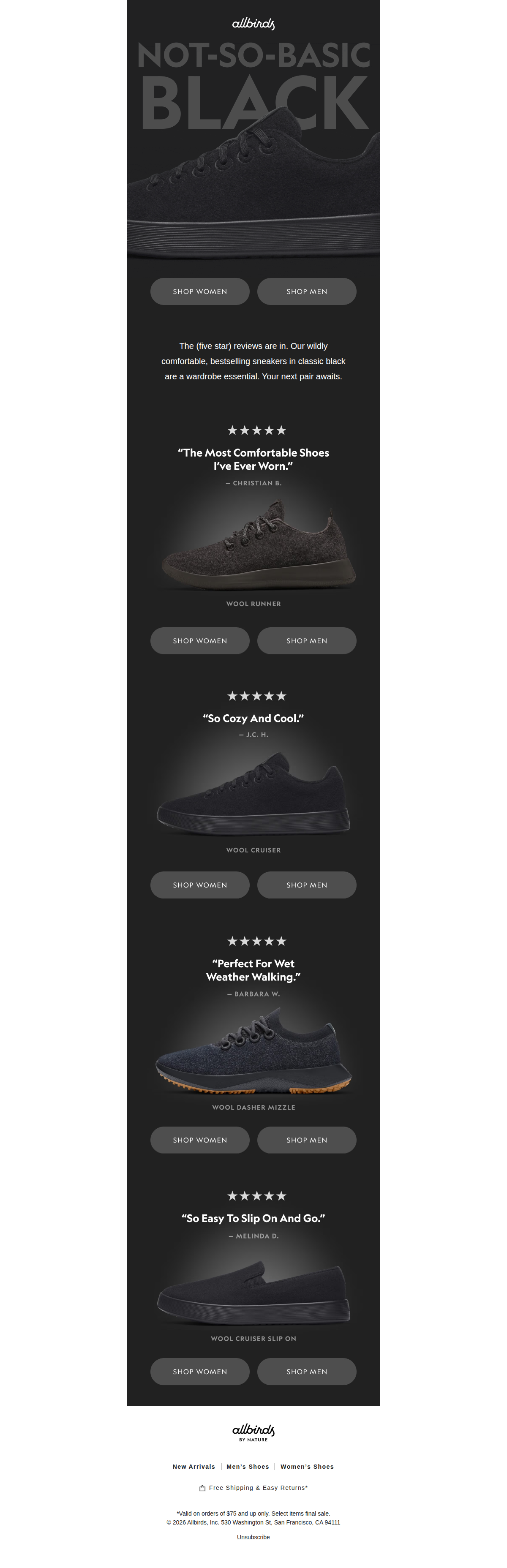 Bestsellers In The Best Color ๐Ÿ–ค โ€” Allbirds | Chrissy Convert's Swipe File