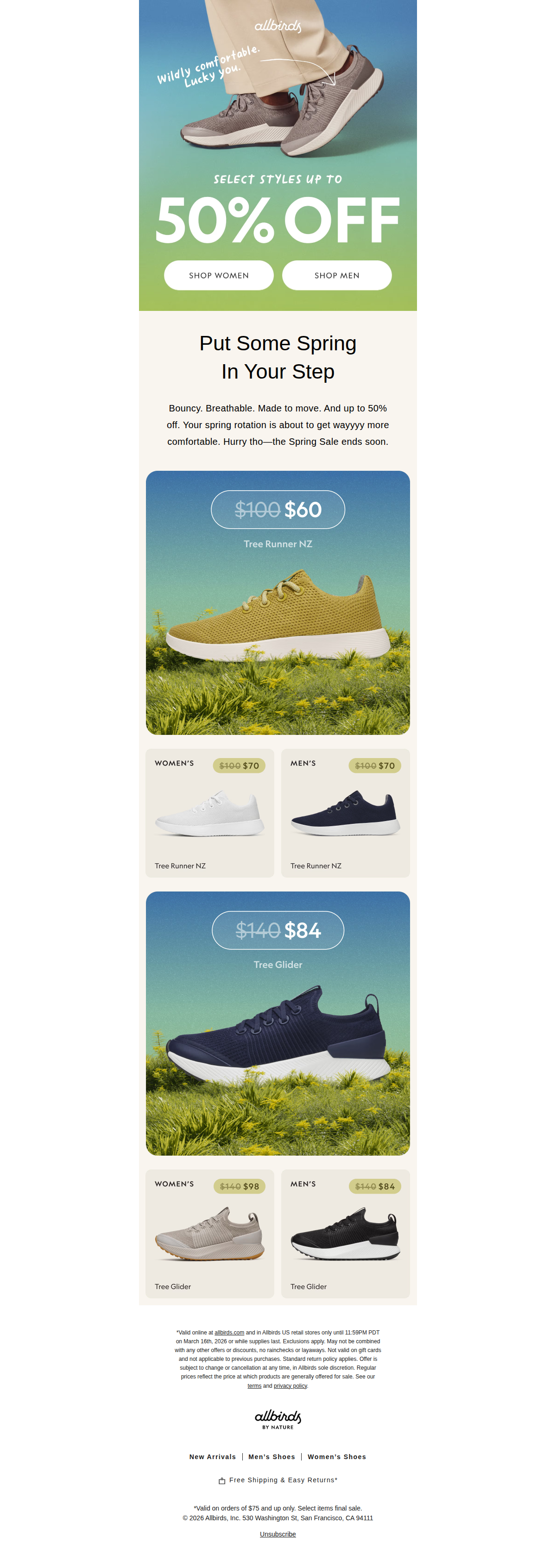 Spring Sale: Up to 50% Off — Allbirds | Chrissy Convert's Swipe File
